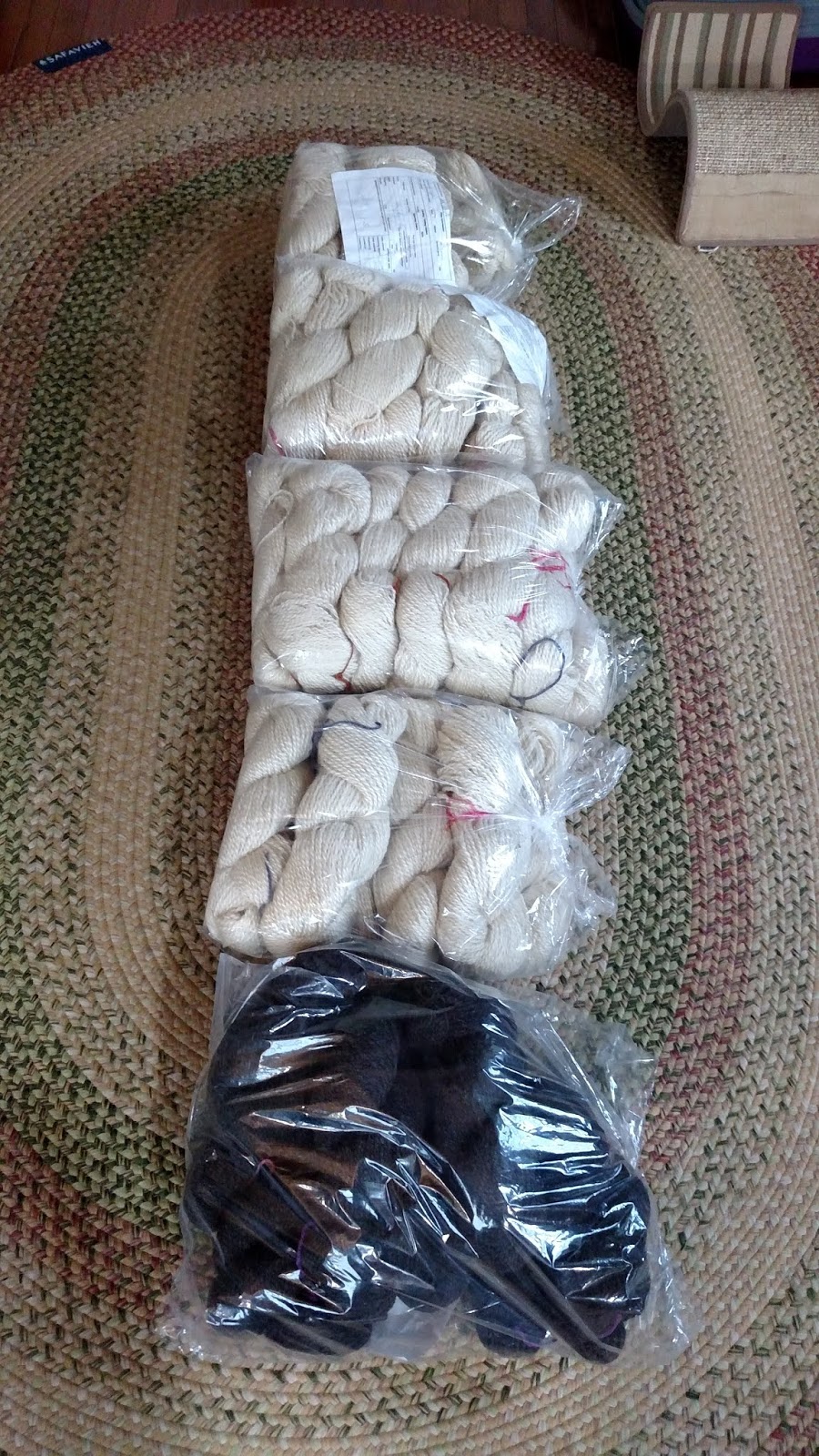 So, it has been about a year and a half with our very own sheep. 3 Border Leicesters, and one......cross. I think she is a Shetland and a----Last May was our first sheering, and I sent the wool to a semi-local mill to be made into Aran weight yarn. I currently don't have the time, skill, or if I am completely honest, the inclination to spin my own yarn. Someday maybe. Let me tell you what I've discovered: